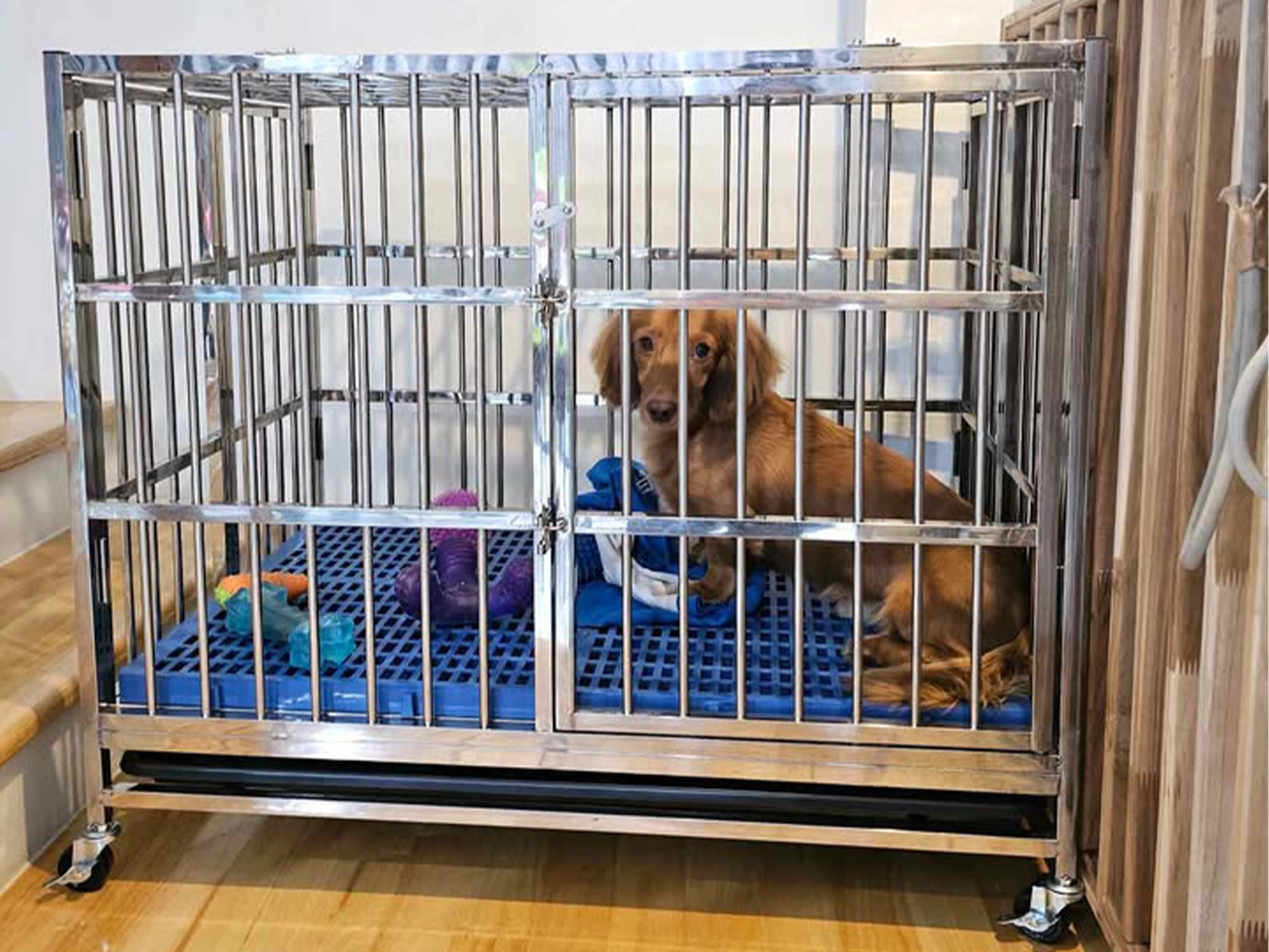 ❌กรงเหล็กเกิดสนิมง่ายเมื่อโดนน้ำหรือปัสสาวะ อาจทำให้กรงเปราะ แตก หัก หรือมีเศษแหลมคมที่อาจบาดสุนัขจนเกิดแผลติดเชื้อ